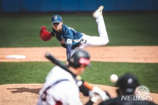 김영규 선수는 큰 키에서 뿜어져 나오는 타점 높은 투구와 예리한 슬라이더를 주무기로 하는 투수입니다.